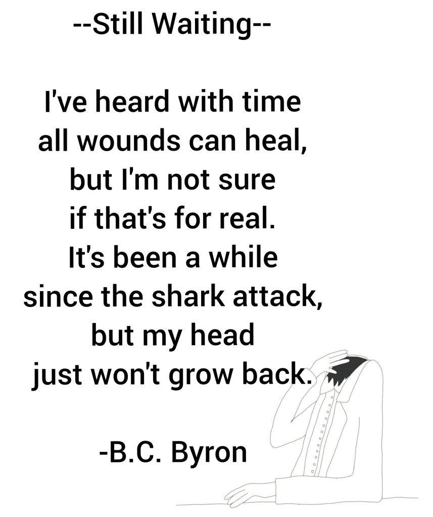 Then that wonderful time came when the body is heavy and the mind is half asleep. Thoughts mix up in weird ways and connections that wouldn’t normally happen in the brain do happen. I keep my phone or a notebook near my bed every night hoping for poem inspiration during this brain-malfunctioning, half-awake time. This poem really seemed epic while I was in that dreamy state writing it down. When I woke up in the morning, I checked my notes with a vague memory of having written something cool. Boy, was I disappointed to see a whopping 5 line poem about a missing head. So, here you go. It is pretty catchy, though. I can’t seem to get it out of my head (pun intended).