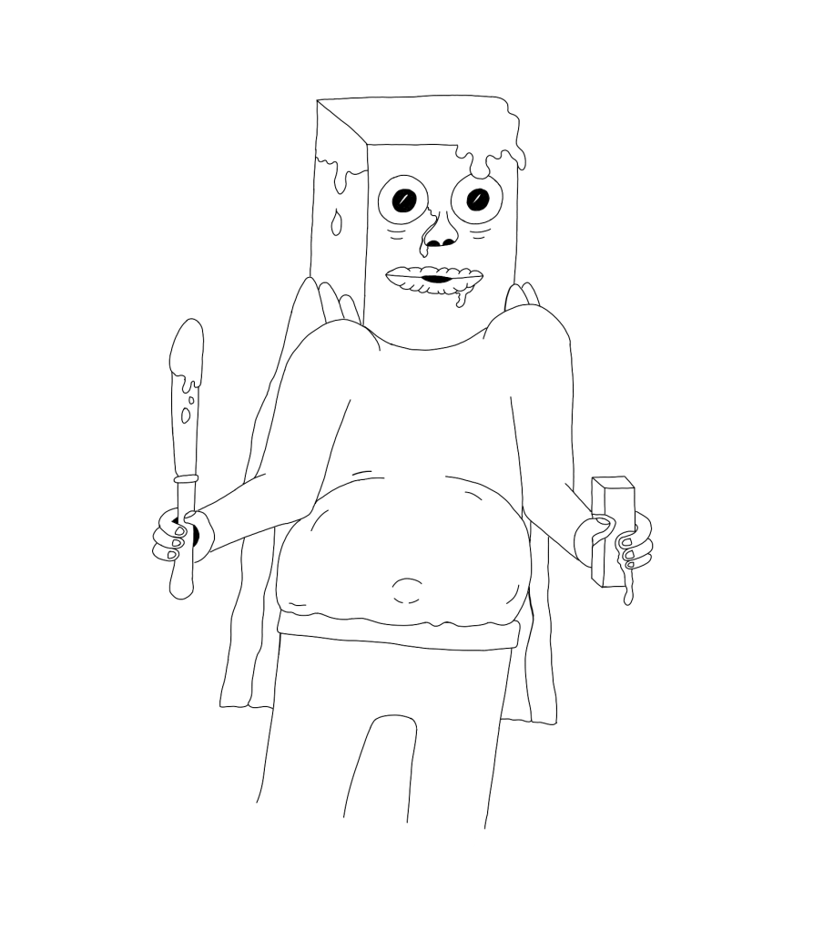 Butter Man Butter Man Greatest hero in all the land. Against healthy food he took a stand, saving us from all that's bland. Butter seeped from all his pores, from nose and ears came even more. Couldn't stop it if you try - the hero's endless butter supply. A pound of goodness for every meal. Soaking in butter adds appeal. Pour it, drench it, slather and spread. Fixes so much more than bread. Butter Man kept us all well fed. "Help! It's veggies from a can! Come and save us, Butter Man!" Alas, these words you'll hear no more, for our champion has gone before. This hero's tale, I weep to utter. To him we raise a glass of butter. Though he flavored all the foods we eat, no amount of butter could defeat the evil villain Heart Disease. Butter Man Oh, Butter Man may you rest in grease. -B.C. Byron