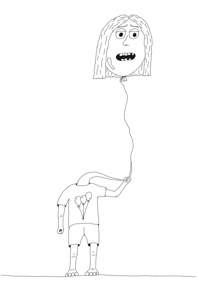 On another note, I’m sure right now my readers are all noticing the glaring problem with this drawing. The balloon head is floating, but the poem is called AIRhead. Clearly the head would have to be filled with helium or hydrogen to float like that and, even with helium, the mass of the bone and skin would probably overcome the buoyancy of the lighter-than-air gas inside. The other elements of this drawing are realistic enough, a brainless kid still standing and holding her taffy-like stretched neck, but air floating in air? Come on, man. Learn about density!